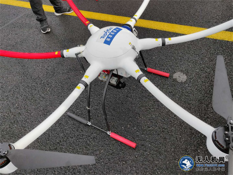 拓攻机器人作为行业知名企业此次携植保飞控TI-A、行业飞控M2、Apollo等主打产品齐齐亮相,并且在展位上我们看到了几款不同的无人机,彰显拓攻飞控在多类型无人机的技术应用。下午,这款搭载拓攻飞控的多旋翼也在观众的注视下飞行表演,这个环节表现出良好的稳定。