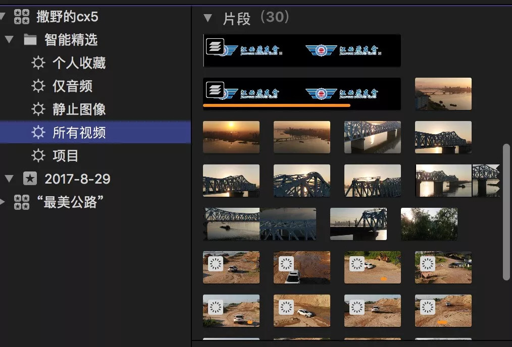 1.首先按照工作流程,新建资源库,然后将拍摄的文件全部导入这个资源库中。