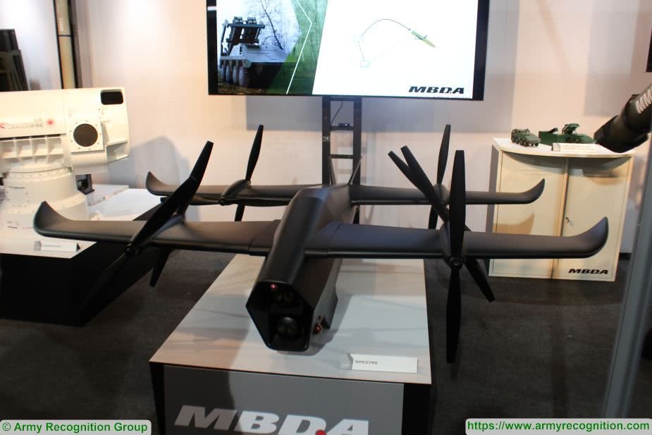 该无人机名为“幽灵”(Spectre),是一种倾转旋翼设计的电动垂直起降无人机。根据MBDA公布的数据,“幽灵”的巡航速度为180公里/小时,巡航高度100米,作战半径超过10公里,飞行续航时间超过60分钟。