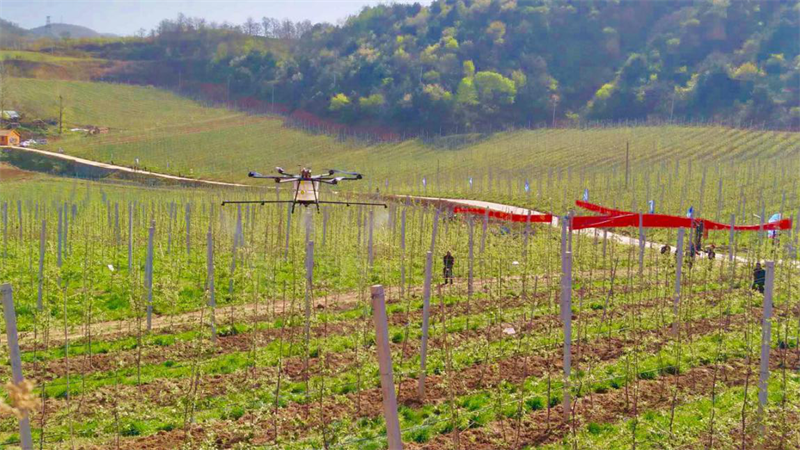 根据工作人员的介绍我们了解到,此次所带来的无人机叫做园林植保无人机,主要应用场景为花园、果园、幼苗林等。我们知道在这些环境下,对无人机打药的要求首要的便是穿透力,如果穿透力度不够,就不能有效地实施防治措施。喷洒均匀、穿透力强、省时省力都是这两款无人机的优点,农民朋友们可以放心使用。