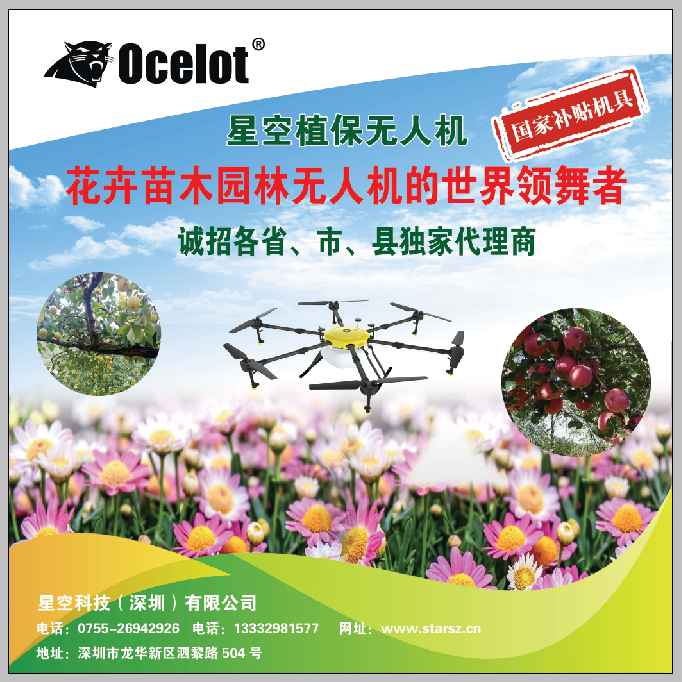 星空S系列电动植保无人机产品经过无数次高强度测试,性能稳定可靠,耐用性好,故障率低,专利防荡药箱及离心专业喷嘴保证喷雾均匀充分。该系列植保无人机美观实用、植保效率高,效果好。广泛应用于高山、丘陵、平原、盆地等各种地形,在水稻、小麦、玉米、棉花、果蔬、茶园等农作物上作业效果良好,可以执行喷药、除草剂、催熟剂、落叶剂等多种植保作业任务,是国内综合性能最佳的植保无人机。