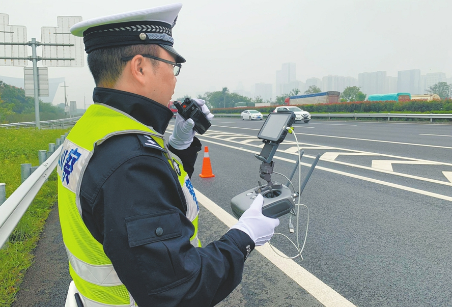 民警使用无人机远距离对违法车辆拍摄/图 来源:华西都市报