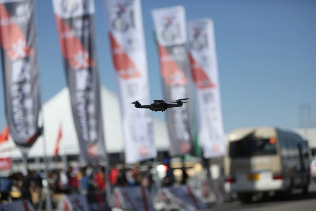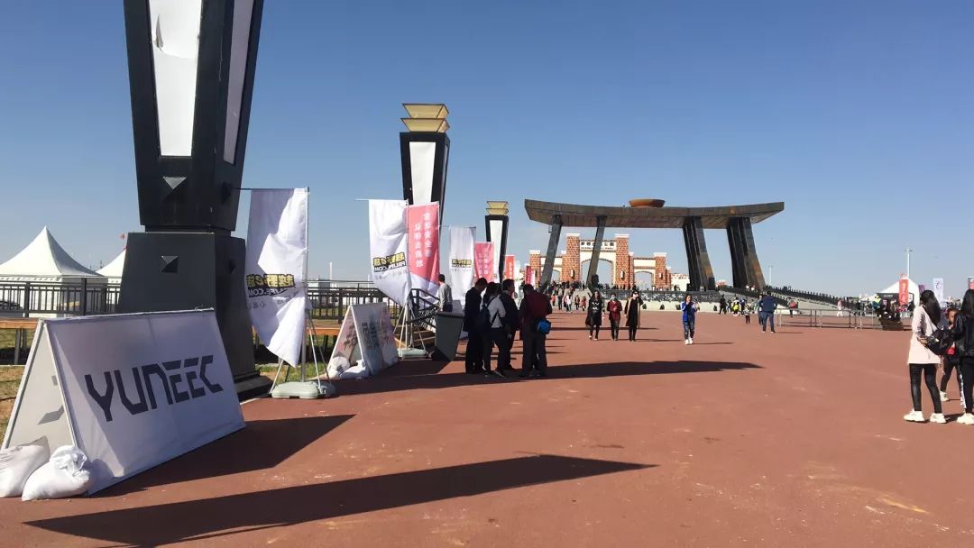 在展台的后方,印有YUNECC的黑色旗帜迎风飘扬。展台上精致的YUNECC昊翔无人机,在大漠阳光的映衬下光彩夺目,引得无数参赛选手驻足赏玩。