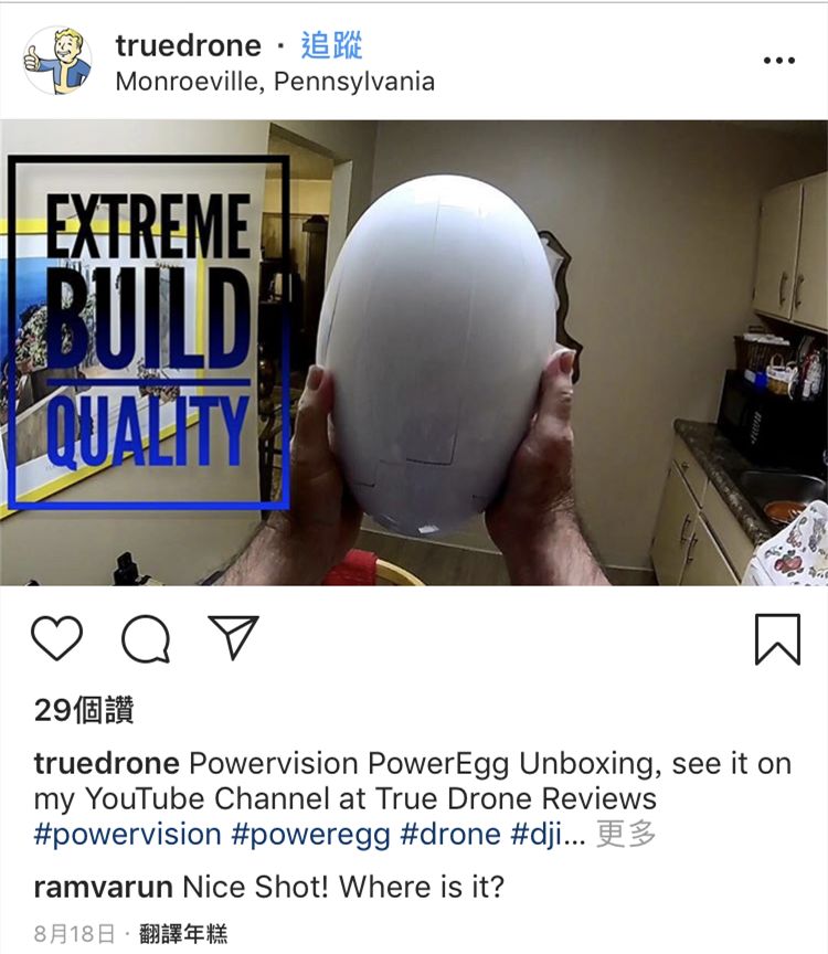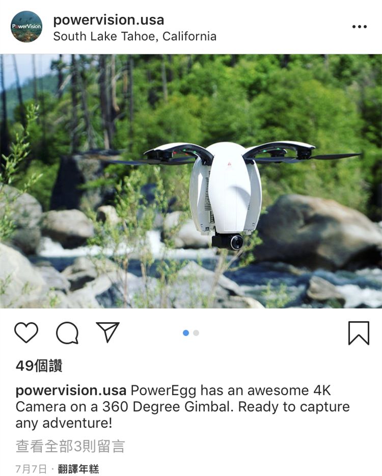 这张可以清晰的看到PowerEgg小巨蛋的4K高清航拍相机呦~