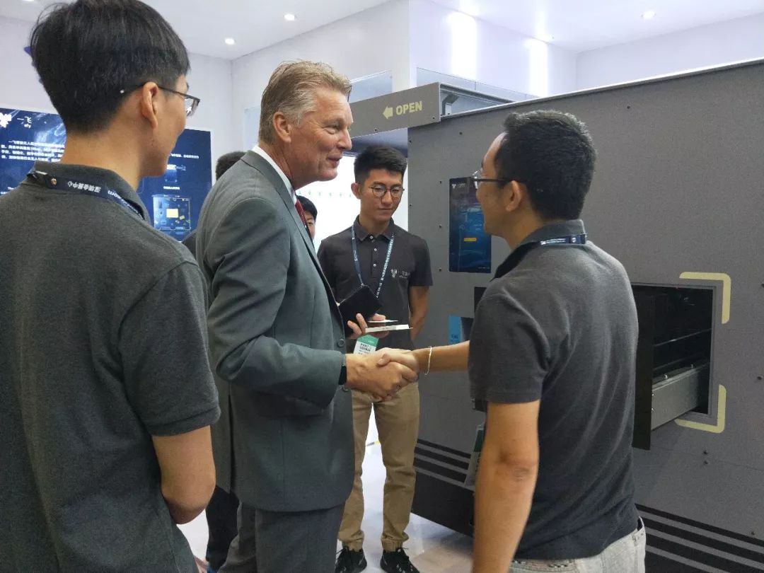 观众驻足一飞智控展位体验产品