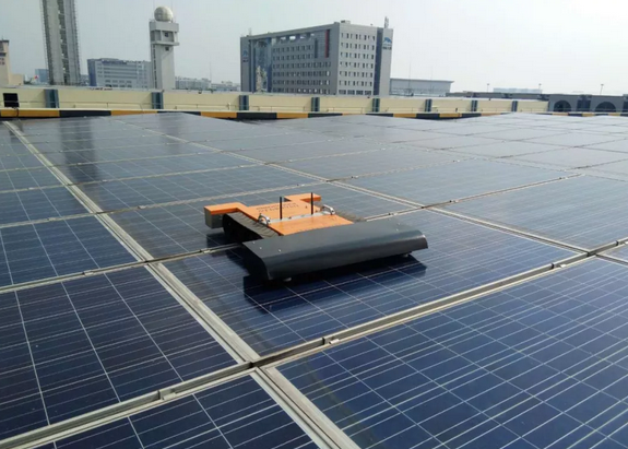 创动C系列集中式光伏无水清洁机器人满足大面积、长距离、多环境的集中式光伏电站光伏组件的清洁需求。C系列集中式光伏无水清洁机器人配备风光云大数据智能管理系统,首次实现了组件间前后、高低跨越、长距离跨排清洁工作,结合机器人搬运车,率先实现跨排清洁功能。在解决清洁困难问题的同时,极大地降低了机器人投入数量,节省投入成本。