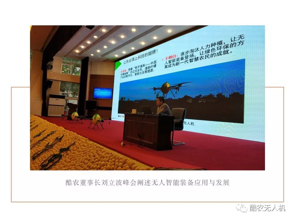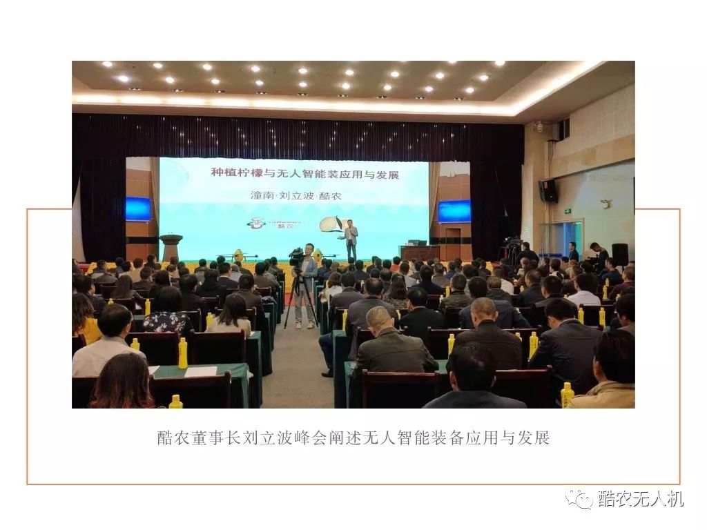 另外,节会期间将邀请国内知名专家召开无人机应用产业峰会,推动大数据智能化为现代农业赋能。酷农无人机董事长刘立波围绕种植柠檬与无人机智能装备应用和发展作了十分精彩的讲授,随着“数字潼南——中国柠檬指数”的正式发布,潼南柠檬产业的数字化、智能化发展提速。无人机等智能装备的出现将逐步淘汰人力种植,让绿色环保方案成为新一代智慧农民的成就。让与会人员对柠檬大健康、智能化产业发展有了新认识、新判断、新方法。