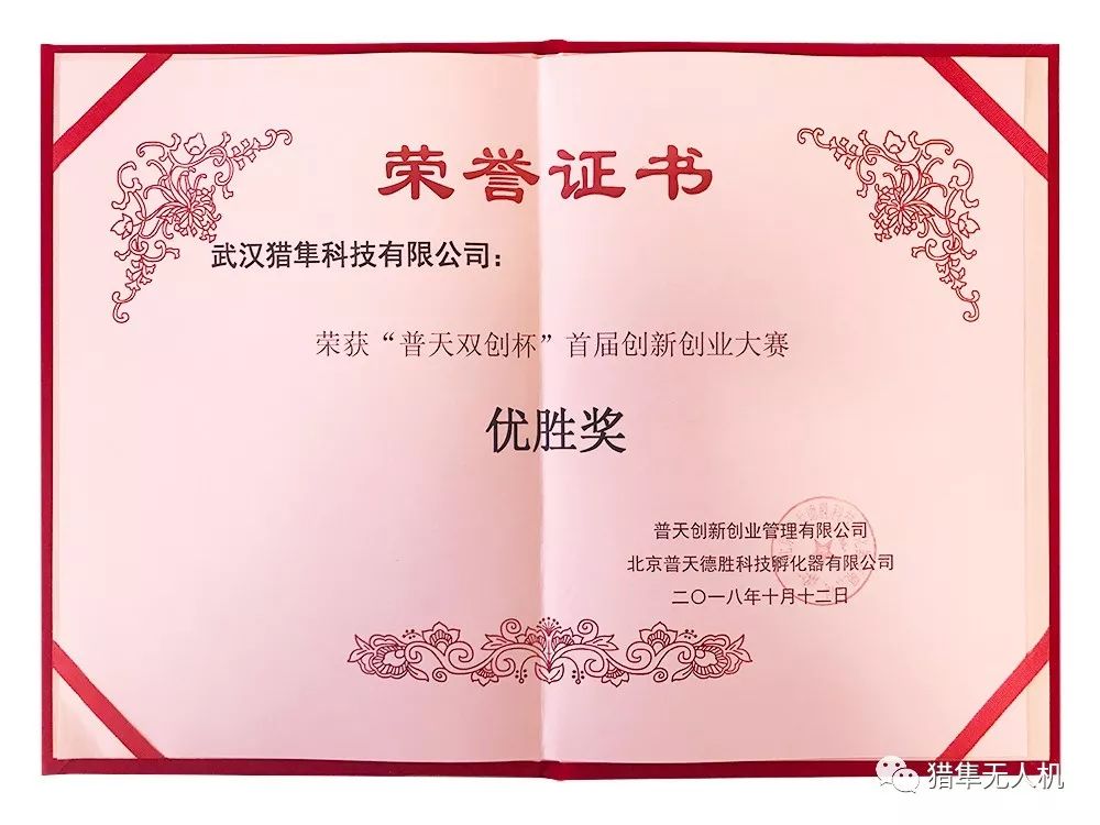 2018年10月12日,“普天双创杯”首届创新创业大赛结果公布,武汉猎隼科技有限公司的蜂群技术荣获大赛优胜奖。