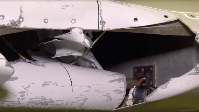 如果一架Mooney M20单引擎飞机以正常巡航速度飞行过程中,和四旋翼无人机碰撞会怎么样?戴顿大学(University of Dayton)想要详细了解无人机对飞行状态下飞机所产生的影响,对此进行实际测试。测试结果显示机翼被无人机严重摧毁,但有趣的是直升机受到的伤害非常小,依然能够继续飞行。