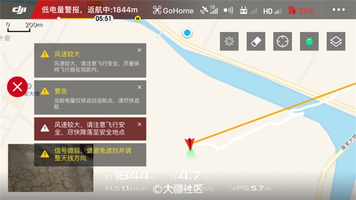 实际:空中的风力往往会比地面大几个数量级,如果无人机频繁弹出大风告警,还是尽快降落为妙。