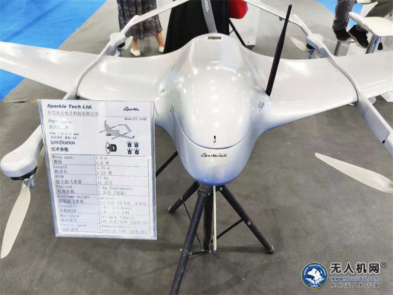 “信鸽”无人机翼展为1.9米,机身长度为1.15米,最大的起飞重量为11kg,净负载重量为1.5kg(不含电池重量)。这款飞机同时还具备1.5-2小时的续航能力以及150公里以上的巡航能力。因此可以应用到边防巡逻、电力、石油管道巡检等领域。