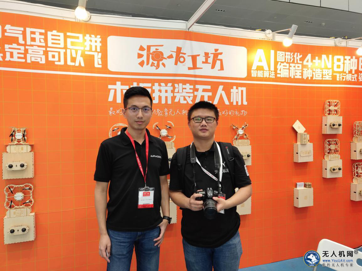此次来到展会上的傲飞创新,带来了旗下主打的木材模块化无人机,“源木工坊”便是该公司创始人兼CEO文放先生主打的理念。该公司并不是说单纯的制作一些小型的消费级无人机,同时具有简单的无人机教程、编程等,让青少年们能够学习、体会到无人机编程的乐趣。