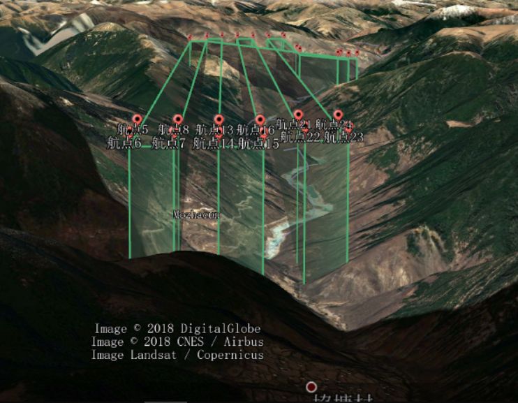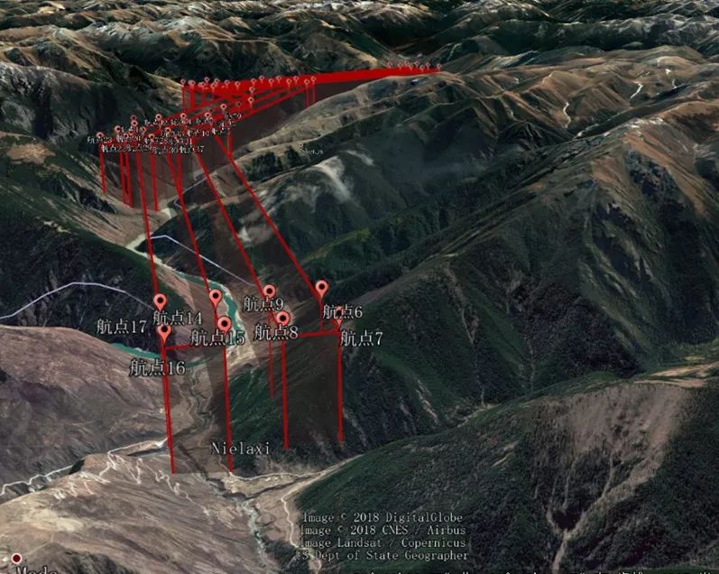 作业起飞海拔3640米,航线高度4014米,飞行测量河道及周边17公里。飞行区域位于峡谷内,区域内高差大,两侧山高基本在5000米以上。