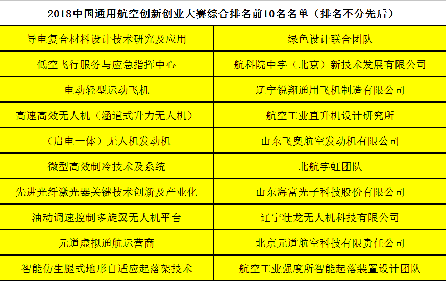 “2018中国通用航空创新创业大赛”于8月2日正式启动,先后经历了报名、海选、初赛等阶段。经过专家综合评定,从报名的212个项目中选出40强项目进入初赛,初赛再产生20强项目进入复赛。参加本次复赛的20强项目团队通过路演、答辩和评审委员会闭门评审等环节,根据得分多少综合排定名次。入围决赛的十强团队及其项目,创新创业特点异常鲜明,内容十分丰富,涵盖了技术研发、运营保障、商业模式、系统集成、前沿探索等领域,基本反映了我国通用航空产业的最新思考与实践,不仅对通用航空产业的发展大有裨益,也可使整个航空事业受益良多。