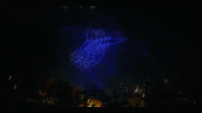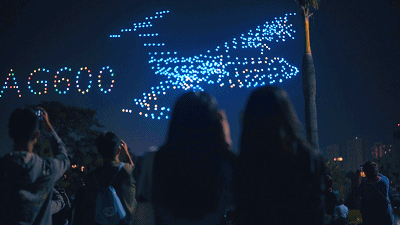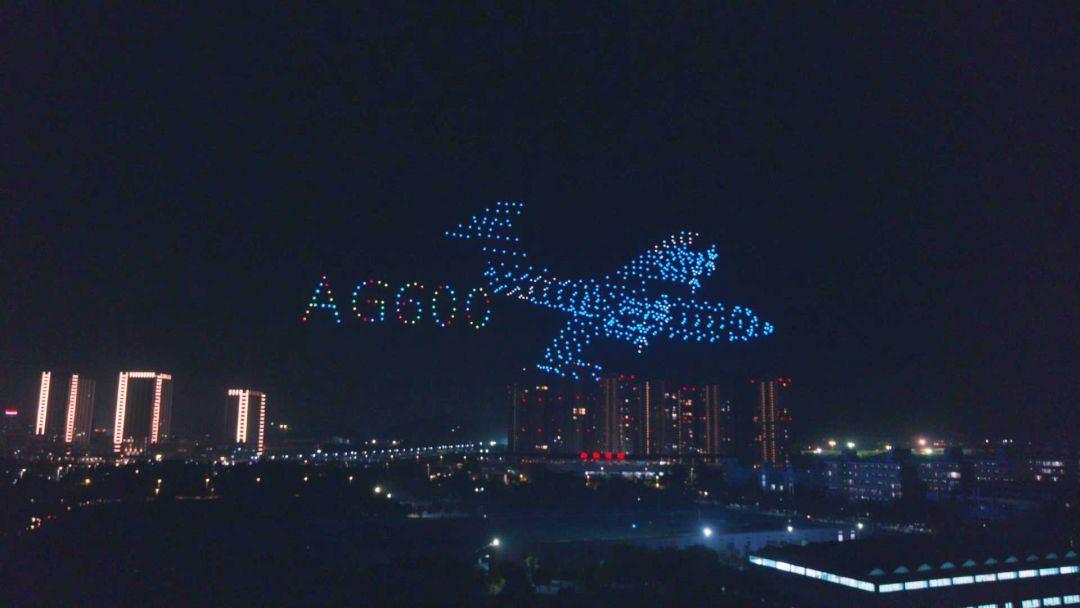 表演中600 架高巨创新 TAKE 无人机组成立体 AG600,疾驰夜空,献礼航展!