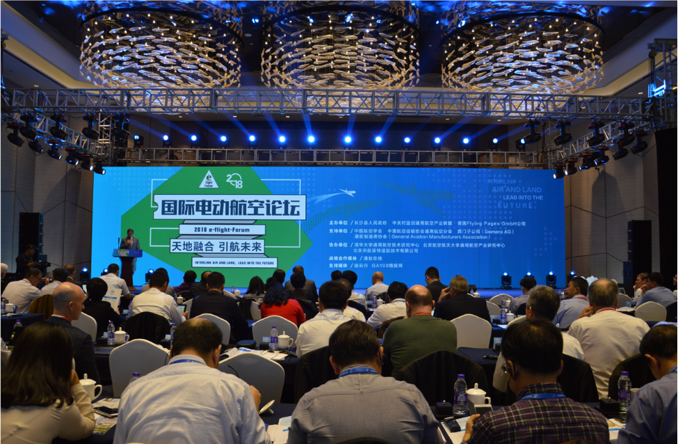 2018年11月3-4日,由长沙县人民政府、中关村蓝创通用航空产业联盟、德国飞页(Flying Pages GmbH)公司主办,中国航空学会、中国航空运输协会通用航空分会、西门子公司、通航制造商协会(GAMA)支持,清华大学通用航空技术研究中心、北京航空航天大学通用航空产业研究中心、北京天航菲特适航技术有限公司协办的第二届国际电动航空论坛在长沙成功举办。