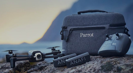 本次Parrot除了带来了ANAFI无人机外,还同期推出了ANAFI Extended套装,该套装包含专用ANAFI无人机+Skycontroller 3 控制器+三块电池+16G TF卡+8组备用螺旋桨叶+单肩包,其中三块电池可以一口气给ANAFI提供最长约75分钟的续航。