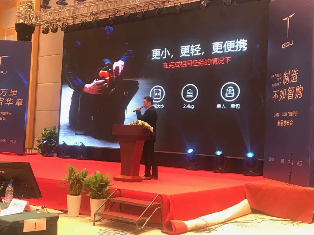 发布会上,普宙总经理姜苏峰对GDU-飞盟平台的新模式进行了详细讲解,飞盟平台无人机正式亮相,全面开放的合作模式,配备全系列智能载荷,折叠后仅A4大小的无人机,便于单兵作战,开启“制造不如智购”的新模式!