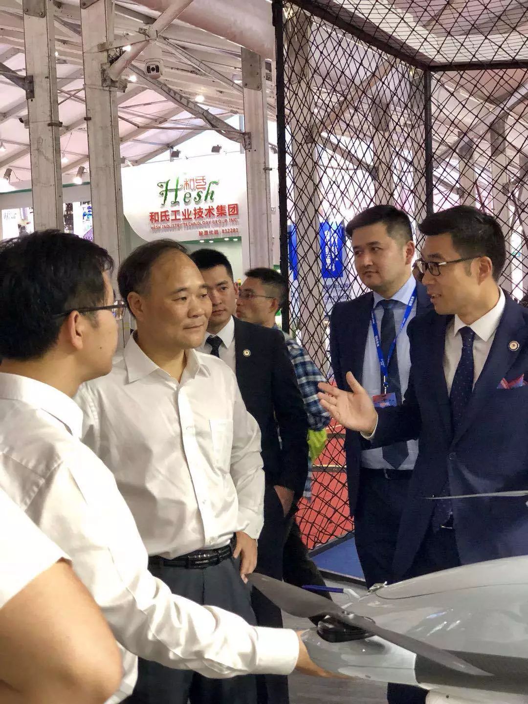 浙江吉利控股集团董事长李书福莅临展会,对易瓦特无人机表示浓厚的兴趣