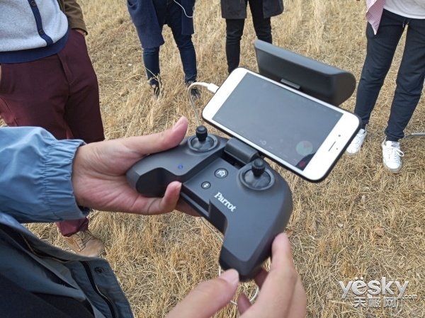 Parrot Skycontroller 3遥控器折叠起来犹如一个游戏手柄,手机支架可根据手机进行自动扩展或收缩,保证手机稳固的定在支架上。遥控器上继承了众多功能,比如快门、变焦控制、摄像头倾斜角度,摄像头重置等,更有一键返航和一键起飞或着陆按键,即使是第一次操控无人机的笔者,也能很快上手,可谓是我等“无人机小白”的福音。