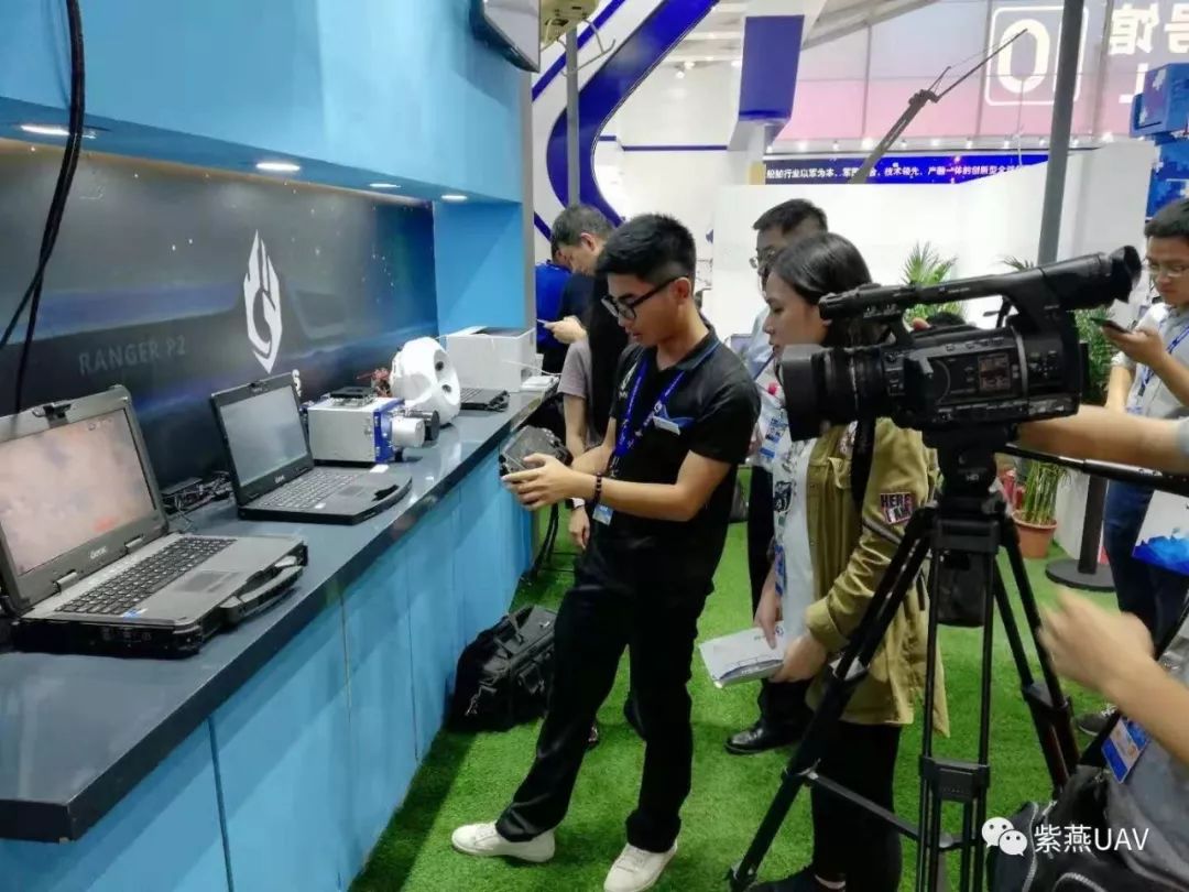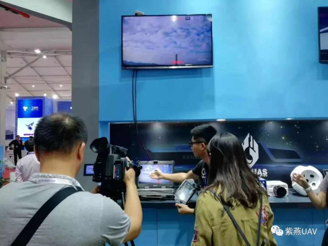 紫燕利用最新的云技术,移动网络通讯数据链,可以将身处异地的无人直升机进行操控,包括规划航线,控制吊舱以及回传实时视频。现场的观众确实见所未见,闻所未闻。电视台记者也被这个应用吓住了,立刻进行了拍摄采访。这个技术,可以在展馆控制飞行远在千里之外的紫燕产品。