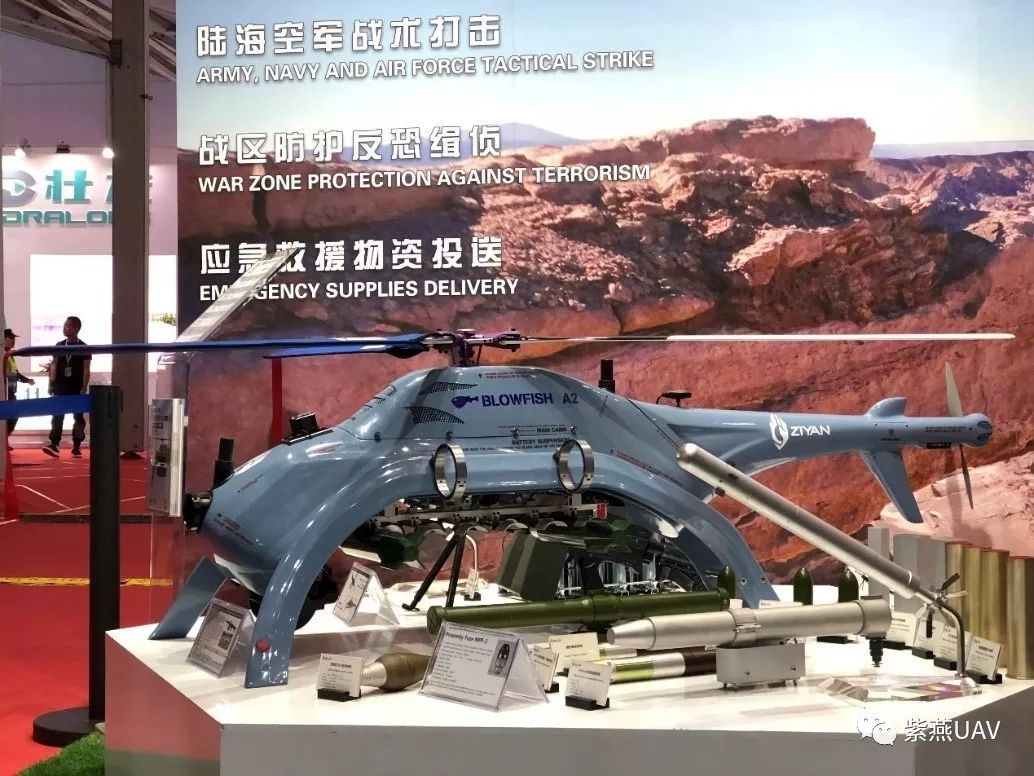 经过升级的河豚A2攻击型无人直升机,具有比河豚A1更大的载荷,更灵活的空间及适配性,光看下图就感觉到什么叫“霸气侧漏”,可以挂载的武器系统多达十几种。