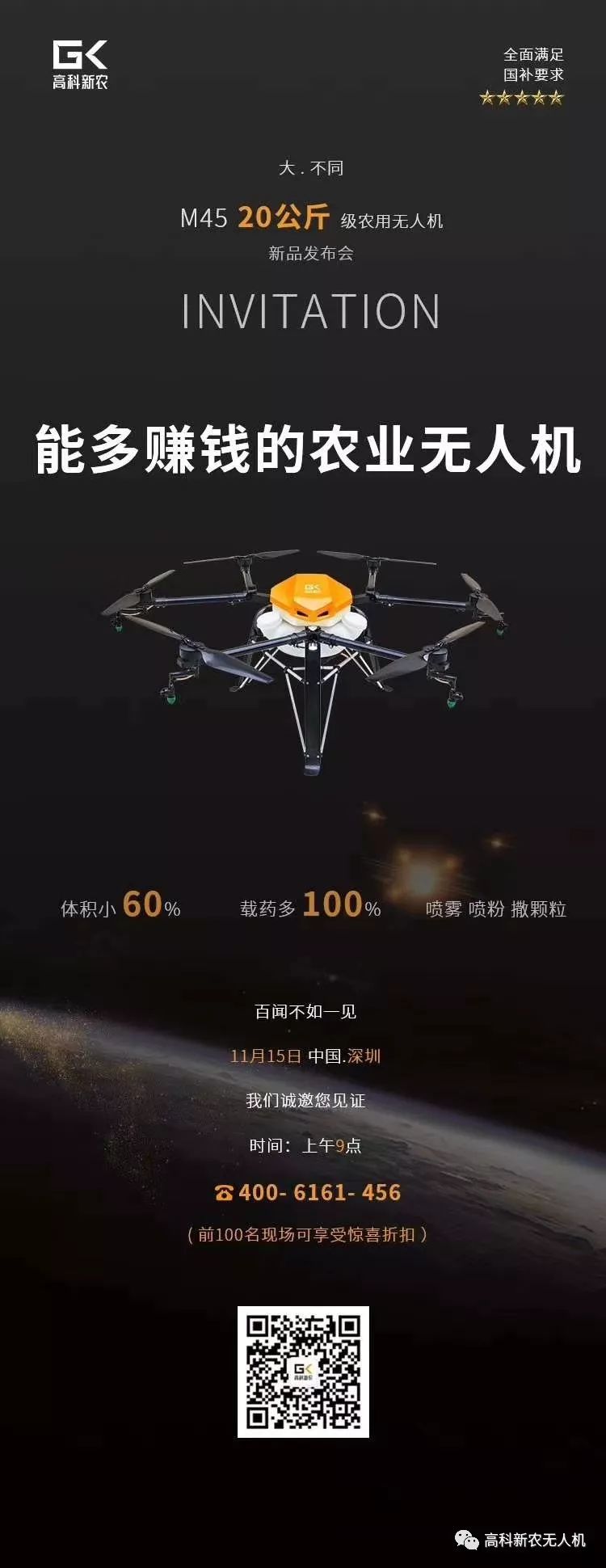 M45智能20L多旋翼无人机——操作简单,灵活多变,易维护;一台机器,两倍效率,一个人力,两倍收入。