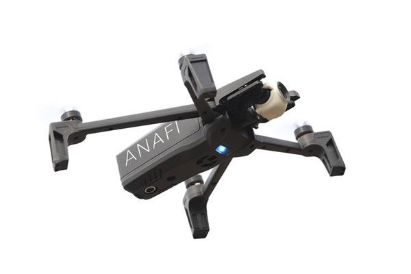 展开机身之后,我们可以非常清晰地看出Anafi无人机的设计结构,它的机身更为“纤细”,线条感很强,螺旋桨可轻松拆卸,在机身正前方搭载了白色的云台相机,整体的设计感还是非常不错。
