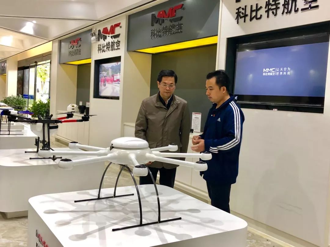 孙华山副部长一行在我司董事长卢致辉的陪同下,参观考察了我司产品展示厅、实验中心、碳纤维无人机生产车间及科比特无人机学院等,卢致辉详尽地介绍了我司发展历程、无人机产品及其生产流程,并现场演示了无人机指挥调度系统的应用,以及我司工业级无人机在应急管理领域的应用案例。