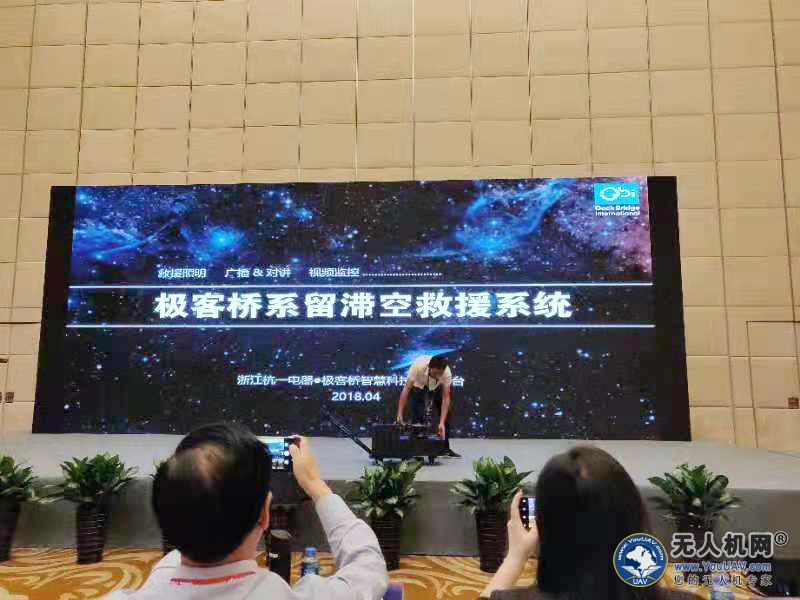 在11月4日的第二届珠海无人系统大会上云集了海内外的无人系统内的优秀企业创始人与领导者们,共同探讨无人机、无人船、无人车等在应急抢险、警用安全、物流运输等各个行业领域里的应用。浙江极客桥智能装备股份有限公司(以下简称:极客桥)董事长胡克飞作为此次无人机行业里快速应急抢险应用的演讲嘉宾之一,在现场分享小型便携式系留无人机的功能及应用。