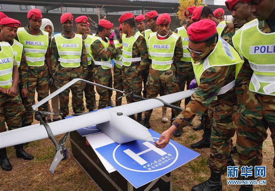 11月14日,来自埃塞俄比亚的警察在北京房山未来智能飞行学院学习无人机驾驶技能。当日,由公安部主办的2018年埃塞俄比亚警察培训班在中国人民公安大学开设无人机警务驾驶课程。来自埃塞俄比亚的30余位警察进行了无人机驾驶操作,并观摩了无人机救援、灭火、侦查等项目的演练。新华社记者 邢广利 摄