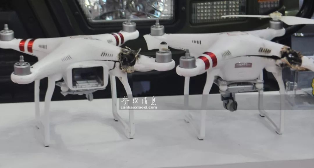 ▲厂商在航展现场展出的“激光净空系统”烧毁的无人机,可见光束毁伤部位十分精确。