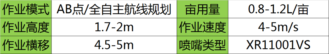 注:本作业参数为防治推荐参数,具体施药根据作业实际情况进行调整