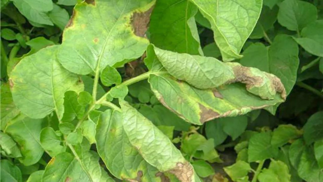 晚疫病是马铃薯上为害最为严重也是最为普遍的病害。晚疫病的病原属于卵菌门,防治可使用的药剂有高效甲霜灵、烯酰吗啉、霜脲氰、霜霉威、银法利(氟吡菌胺▪霜霉威)、氟噻唑吡乙酮、吡唑醚菌酯等或其复配药剂。