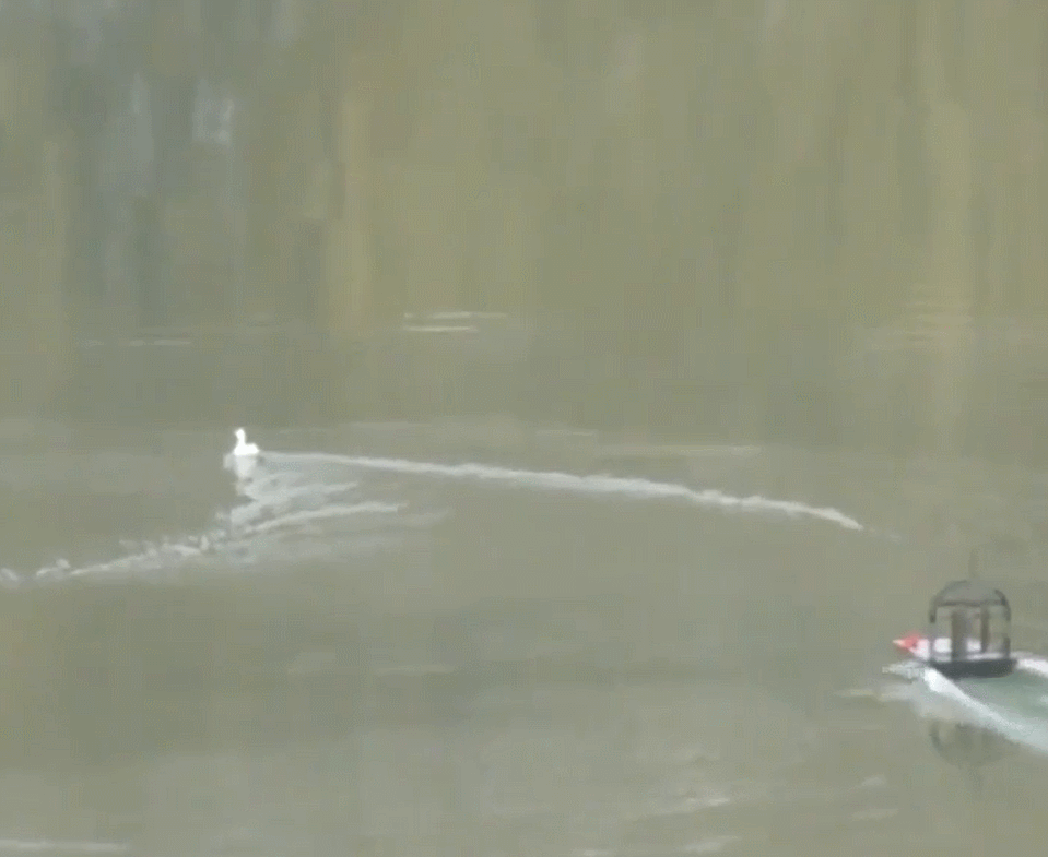 无人机和无人船的配合使用,旨在足够接近水坑中的雪雁,对它们造成足够的干扰。