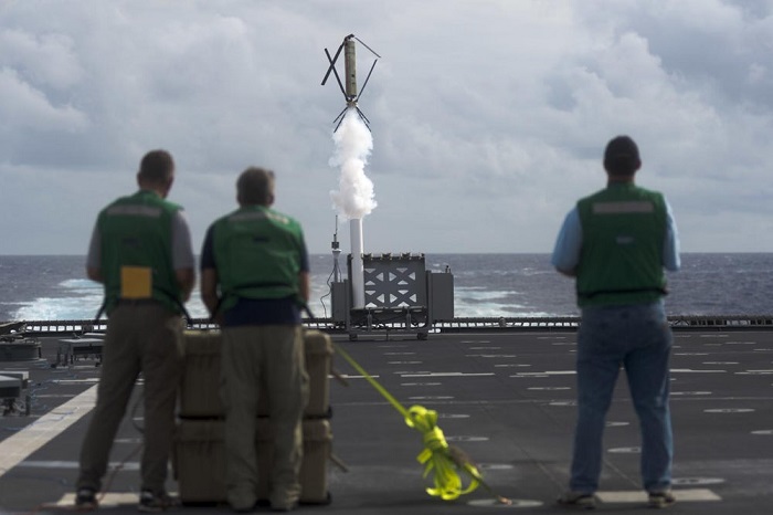 美国海军认为,想要干扰一枚导弹,其中一种方法是在其飞行路径上部署一连串可以迸发无线电的无人机,于是公开寻找商业合作伙伴。该项目名为“主动型网式机载微型假目标”(简称 Nomad),受邀企业需根据自己的需求调整无人机。其长度为 3 英尺(0.9 米),置于一根管中。未启用的情况下,它与一对弹簧加载的转子折叠在一起。