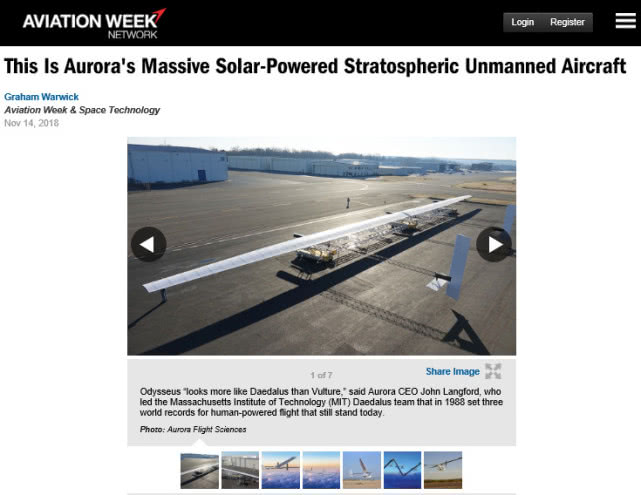 本周,汉能刚刚宣布旗下美国子公司阿尔塔(Alta Devices)的单结砷化镓电池打破世界纪录,11月14日,据美国专业媒体Aviation Week & Space Technology报道,采用汉能阿尔塔全球领先的柔性砷化镓薄膜电池,波音公司旗下极光飞行科学公司(Aurora)设计了一架翼展243英尺(74米)的太阳能无人机“奥德修斯”(Odysseus)。