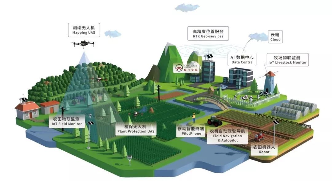 极飞的愿景是,构建一个满足人类未来 100 年发展需求的农业生态系统,让全世界的人们都能获得充足、丰富和安全的食物。成立 14 年来,极飞自主研发了农业无人机、农业无人车、农机自驾仪、农业物联网和智慧农业管理系统等产品。通过构建完善的渠道体系,为农户提供智能、高效、经济的生产工具和数据服务;帮助农场解决劳动力成本高、生产管理粗放等问题。