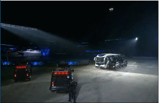 在大巴车反劫持处置环节中,广州市公安局天河区分局操作大疆 经纬 M600 Pro,携带 禅思 Z30 远摄云台相机及矩阵照明灯飞入现场查看大巴劫持情况,并开启照明灯照亮大巴为警方提供有利视觉条件。同时,特警车辆进入现场与“匪徒”正面交锋,无人机一直盘旋上空观测现场,协助特警顺利攻下“匪徒”取得大巴车控制权。