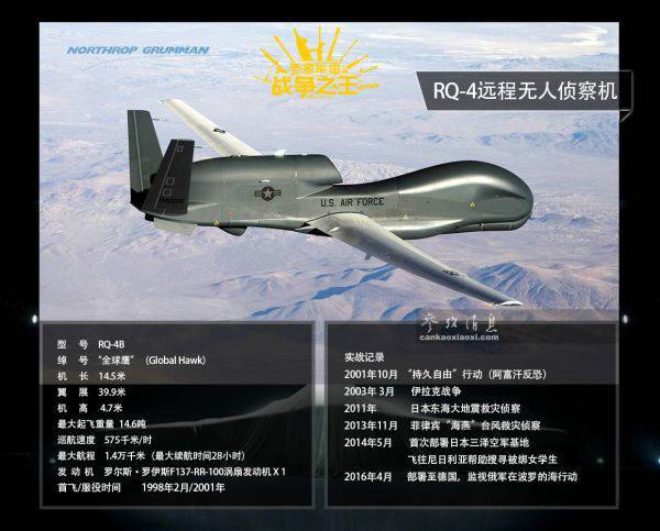 资料图片:RQ-4“全球鹰”无人侦察机详解技参图。