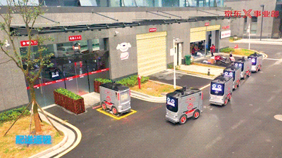 ▲京东物流全球首个由机器人完成配送任务的智能配送站正式投入使用。