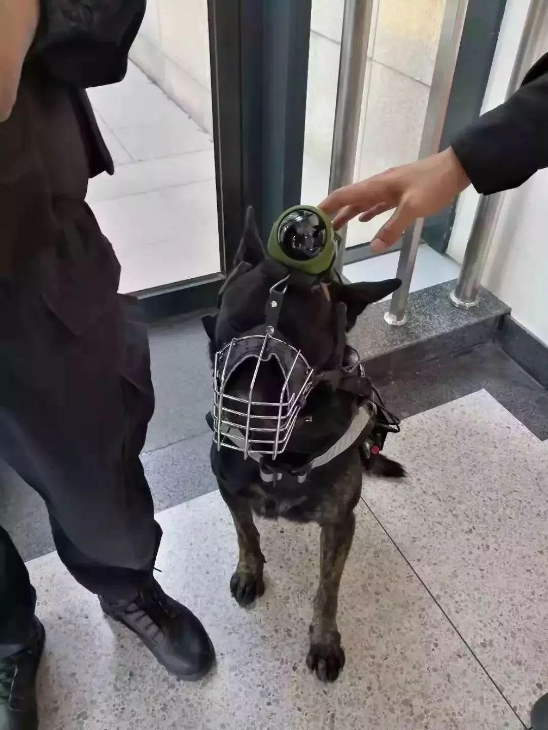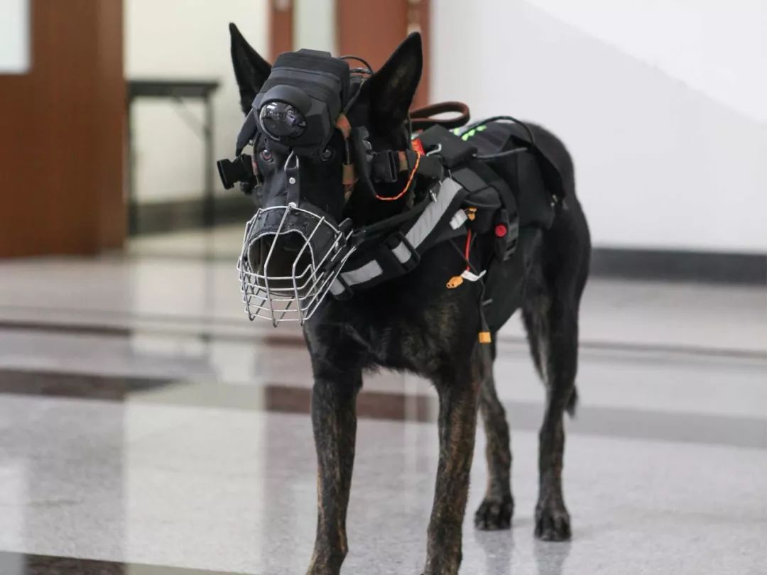佩戴警犬训练追踪仪设备的 “天狼”