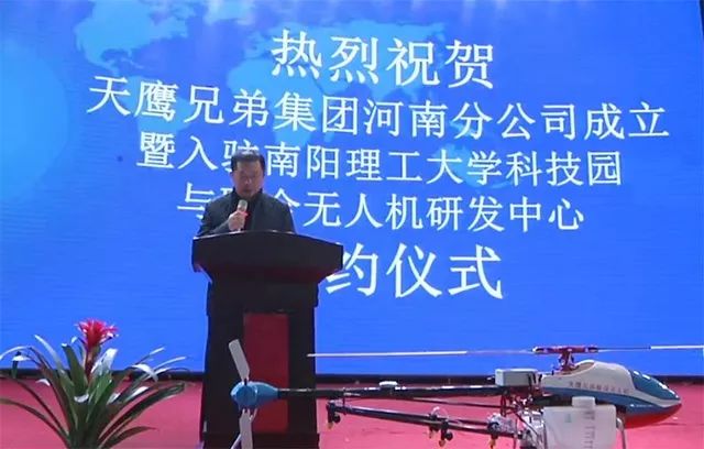 天鹰兄弟集团与南阳理工学院校企合作成立的河南分公司,已签约入驻南阳理工大学科技园。接下来河南分公司将集中发力于无人机专业建设,提供大学生创新创业服务平台,打造本地化服务的植保无人机产业链。