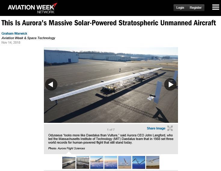 最近,据美国专业媒体Aviation Week & Space Technology报道,采用汉能阿尔塔(Alta Devices)的柔性砷化镓薄膜电池,波音公司旗下极光飞行科学公司(Aurora)有了更厉害的操作。他们设计了一架翼展243英尺(74米)的太阳能无人机“奥德修斯”(Odysseus)。