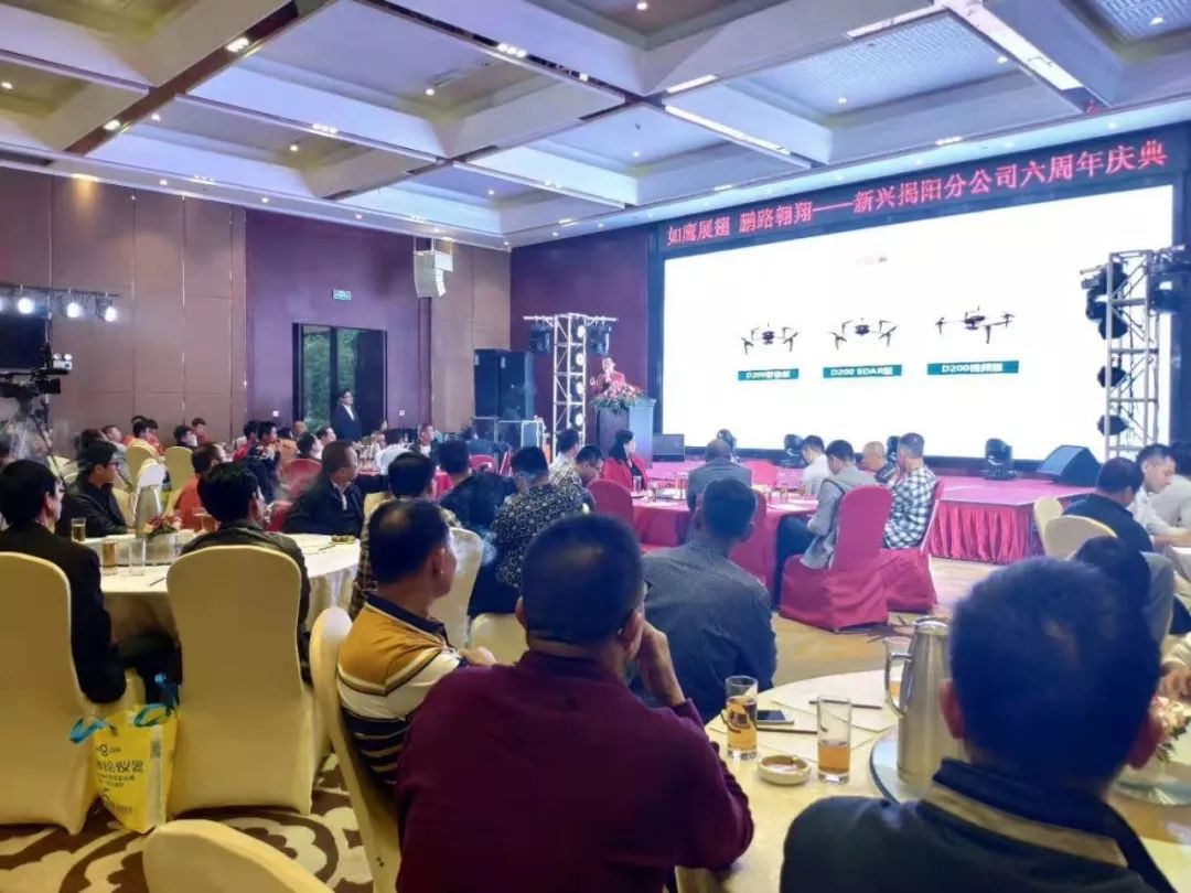 11月25日,飞马机器人广东省区域代理汕头市新兴测绘仪器有限公司揭阳分公司在揭阳市举办公司六周年庆祝活动。庆典以“如鹰展翅,鹏路翱翔”为主题,来自测绘界的客户朋友及厂家等共200多人出席会议,共同庆祝新兴揭阳分公司自2012年创立以来取得的辉煌业绩。