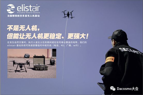 展位上首先吸引目光的要数大佥新引进的功能强大的应急产品:elistair法国精锐航空系留无人机基站。