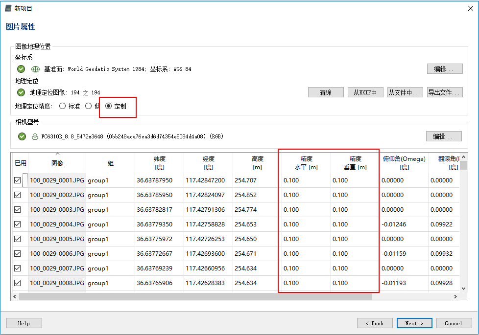 因为JPG照片存储GPS数据为度分秒格式,为避免数据转换错误,也可以直接使用Timestamp.MRK文件中的GPS,单位为度。文件中经纬度高程均为CMOS中心的实时GPS,精度为厘米级。
