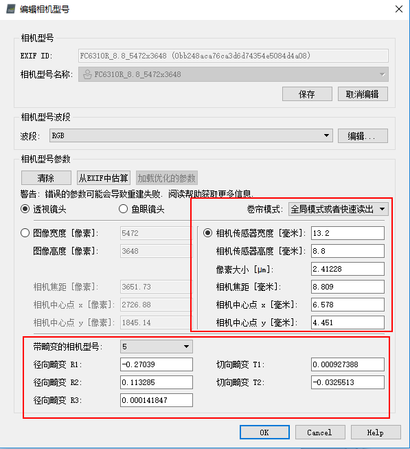 大疆精灵4RTK均已经做过出厂畸变校正,在照片内部已经记录了相应的检校后相机参数,下例所示为赛尔无人机自动精灵4RTK测试机参数,分析可以看出相机畸变特别小。