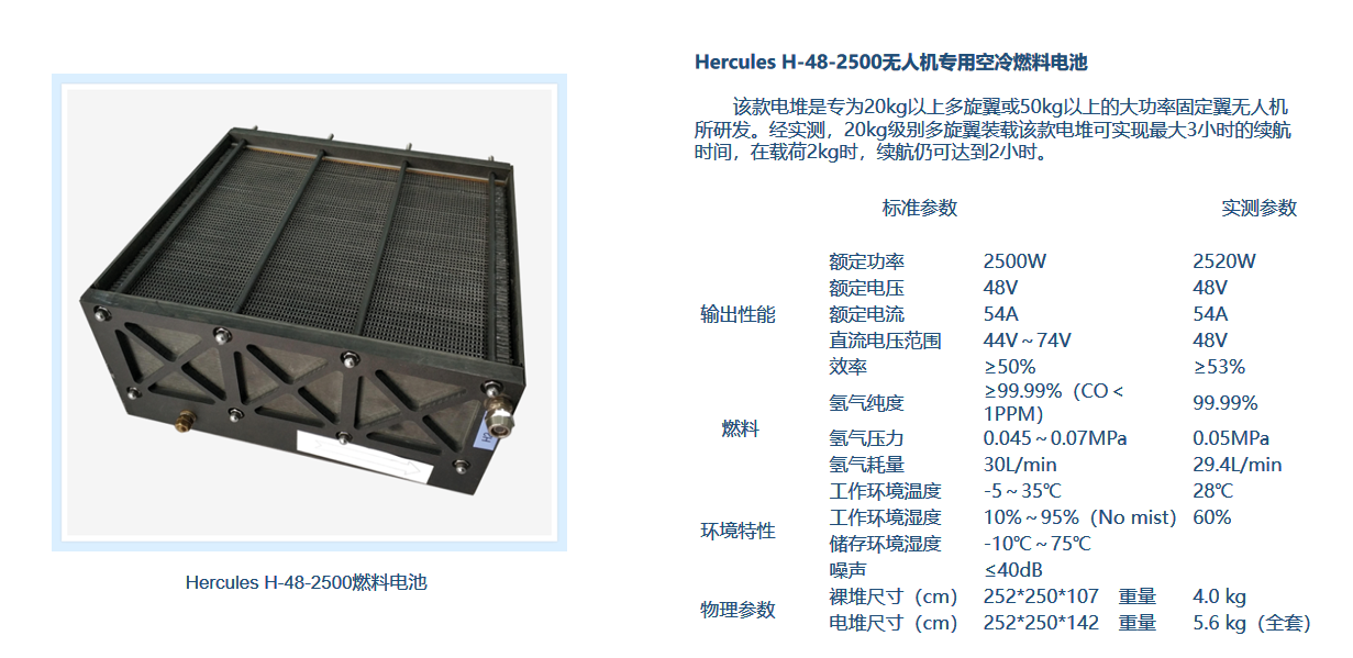 2.5KW空冷燃料电池,专为20kg以上多旋翼无人机或50kg以上的大功率固定翼无人机所研发