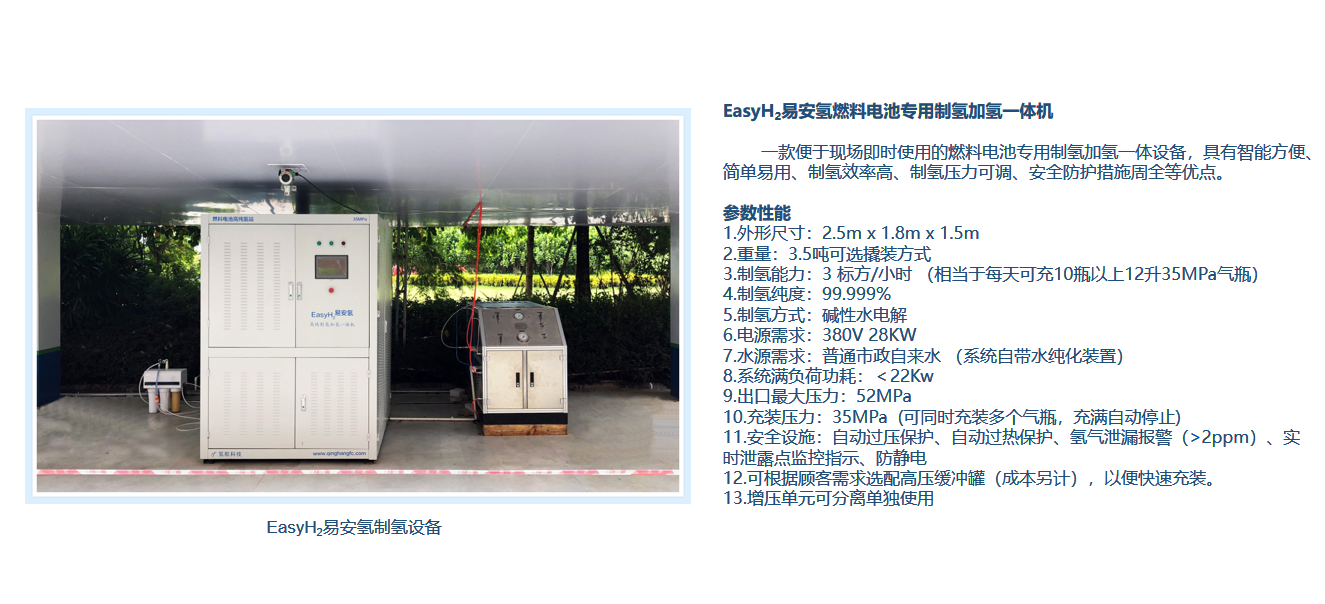 EasyH2易安氢,一款便于现场即时使用的制氢加氢一体设备,具有智能方便、简单易用、安全防护措施周全等优点